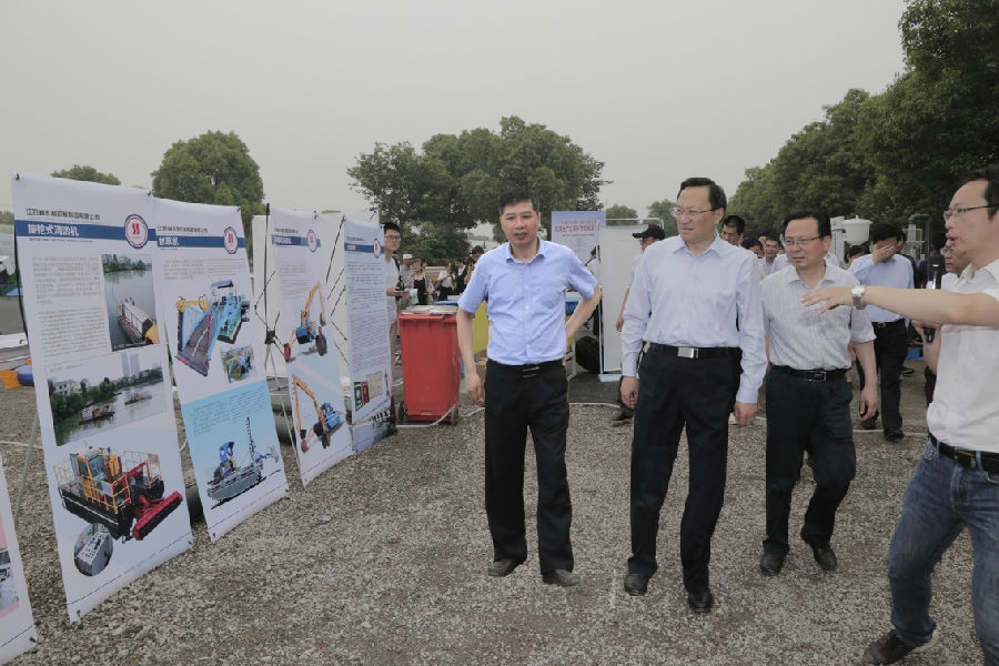 5月29日,江蘇省農(nóng)機產(chǎn)品推進會在太倉現(xiàn)代農(nóng)業(yè)園舉行。江蘇省副省長繆瑞林參觀了省水機公司水利機械產(chǎn)品推介展區(qū),對水機公司大力開發(fā)環(huán)保清淤產(chǎn)品表示贊許。