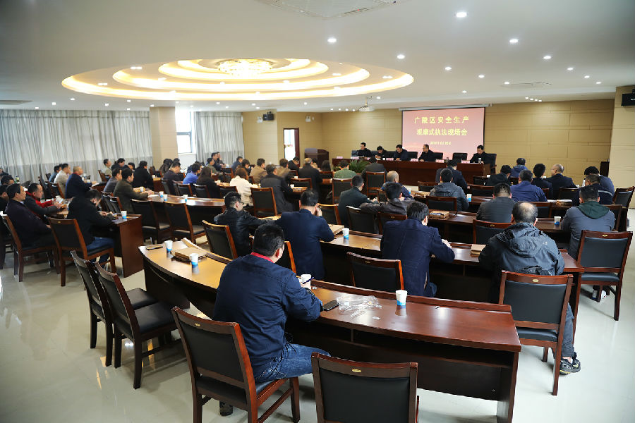 2019年3月20日,揚州市廣陵區(qū)安全生產(chǎn)監(jiān)督管理局在江蘇省水利機械制造有限公司舉辦“廣陵區(qū)安全生產(chǎn)觀摩式執(zhí)法現(xiàn)場會”,市、區(qū)安全生產(chǎn)執(zhí)法大隊、廣陵產(chǎn)業(yè)園區(qū)安監(jiān)站及園區(qū)60家相關(guān)單位80多名安全負責(zé)人參加了會議。