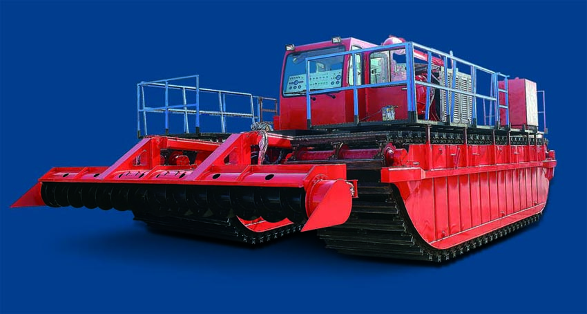 XWQY100型兩棲旋挖式清淤機(jī)是應(yīng)用戶要求而專門設(shè)計(jì)的一種大型池塘水下清淤機(jī)械。該機(jī)以浮箱履帶為基礎(chǔ)實(shí)施工作移位,用旋挖頭切割和收集水下淤泥,用泥漿泵將泥漿吸走并排出,送到指定的排泥場,從而實(shí)現(xiàn)對大型池塘清淤的目的。    該機(jī)也可用于其他具有相似條件的河道、溝渠等淺水水域進(jìn)行清淤作業(yè)。